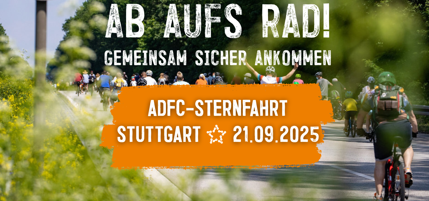 Alle Informationen zur Radsternfahrt, mit Startpunkten, Zwischenkundgebungen und Zubringerdemos, gibt es unter bw.adfc.de/sternfahrt